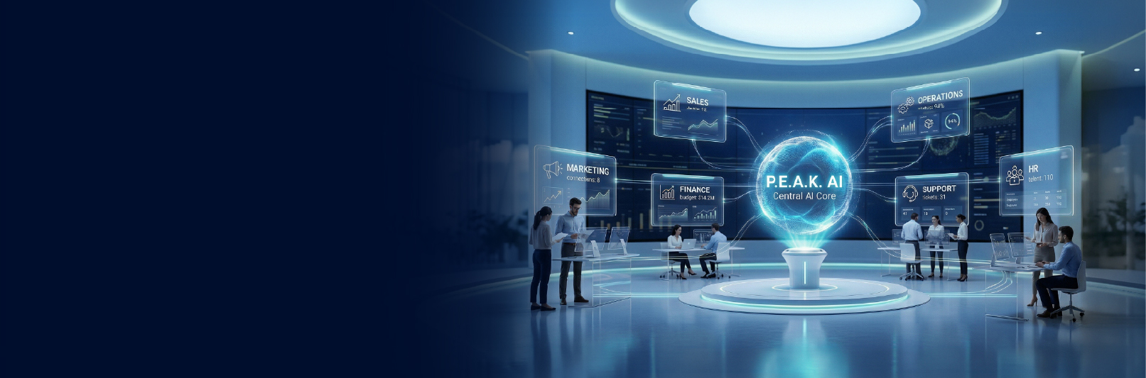 P.E.A.K. deploys GenAI capabilities across all 8 core business functions, eliminating repetitive tasks, accelerating workflows, and enabling data-driven decisions at every level of the organization.