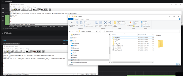 The master script (launchBig.cmd) setups a loop cycle based on the number of files being written in the folder “Hugefiles”. Within this loop, another script is executed (sendFile). This script will upload a file into the SI SFTP Server Mailbox causing an increase of CPU Usage. As more files are uploaded, the Cluster HPA eventually kicks another pod.